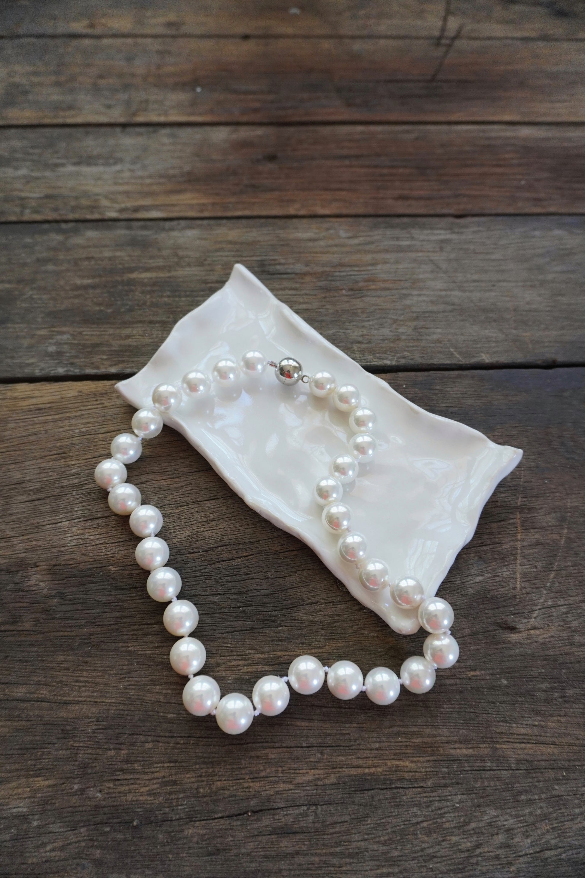 10mm shell pearls with sterling silver clasp. Easy to do up with magnetic ball closure,
