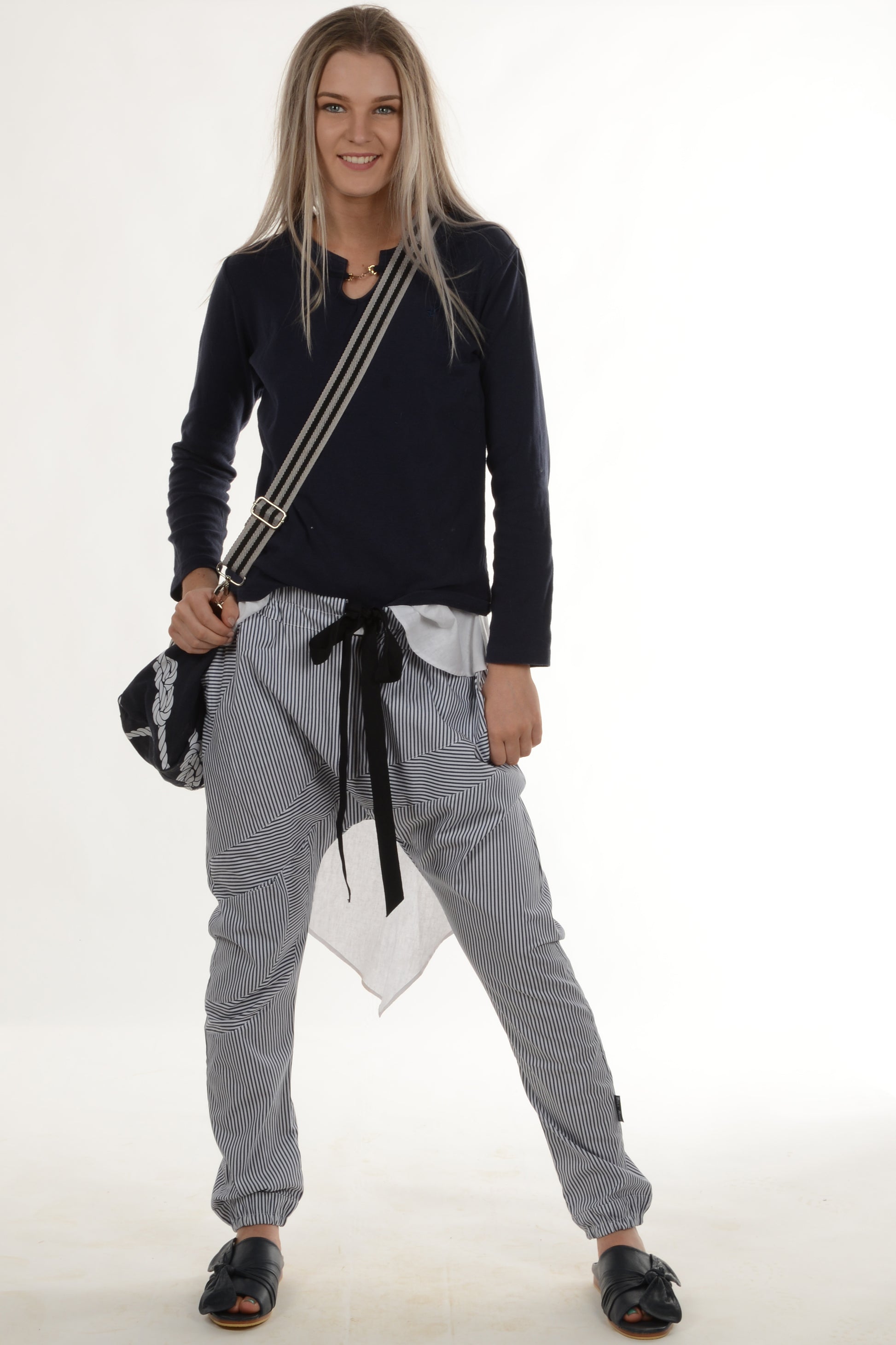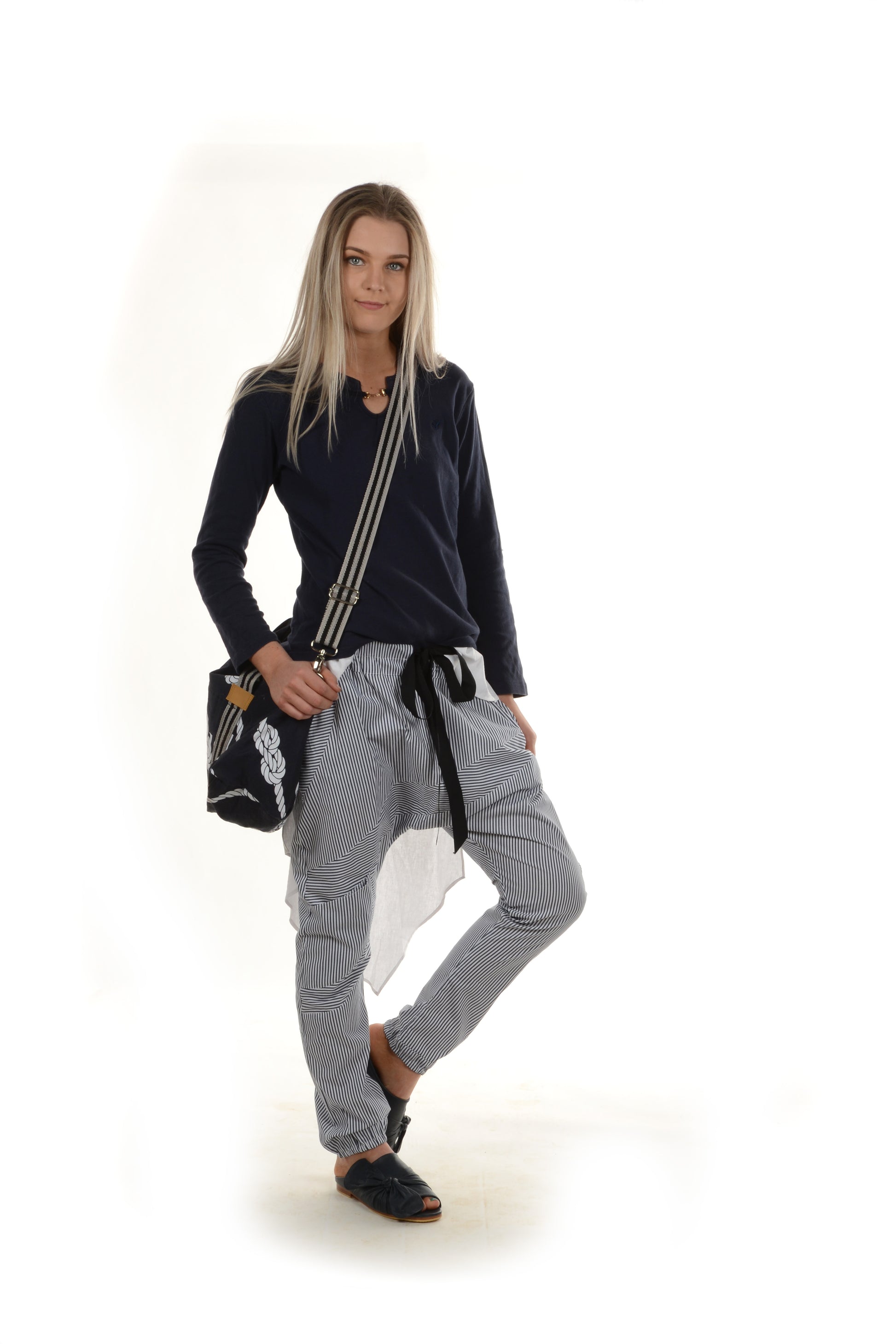 our size chart. For our denim, she wears a size 6. In tops, she wears a size S,