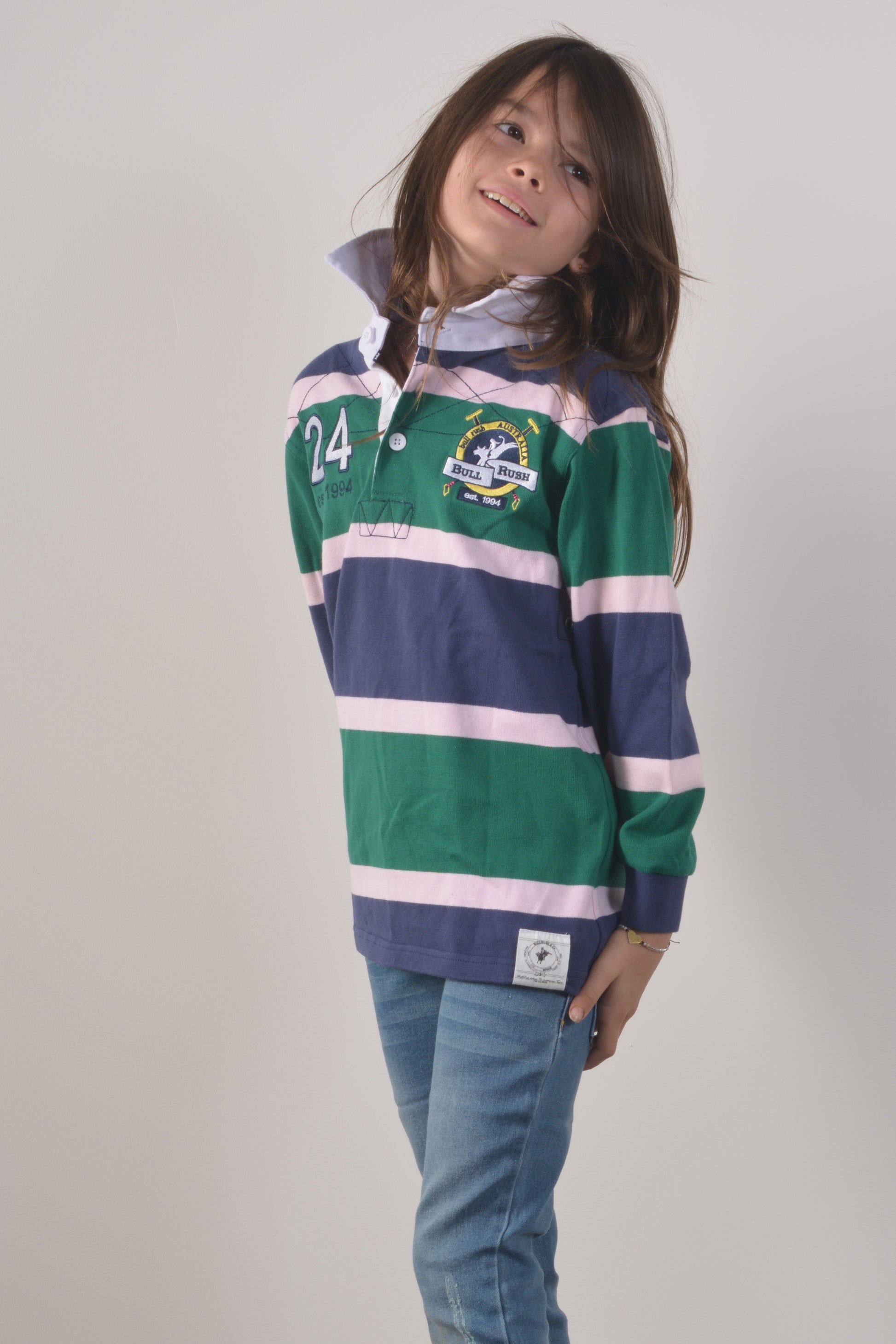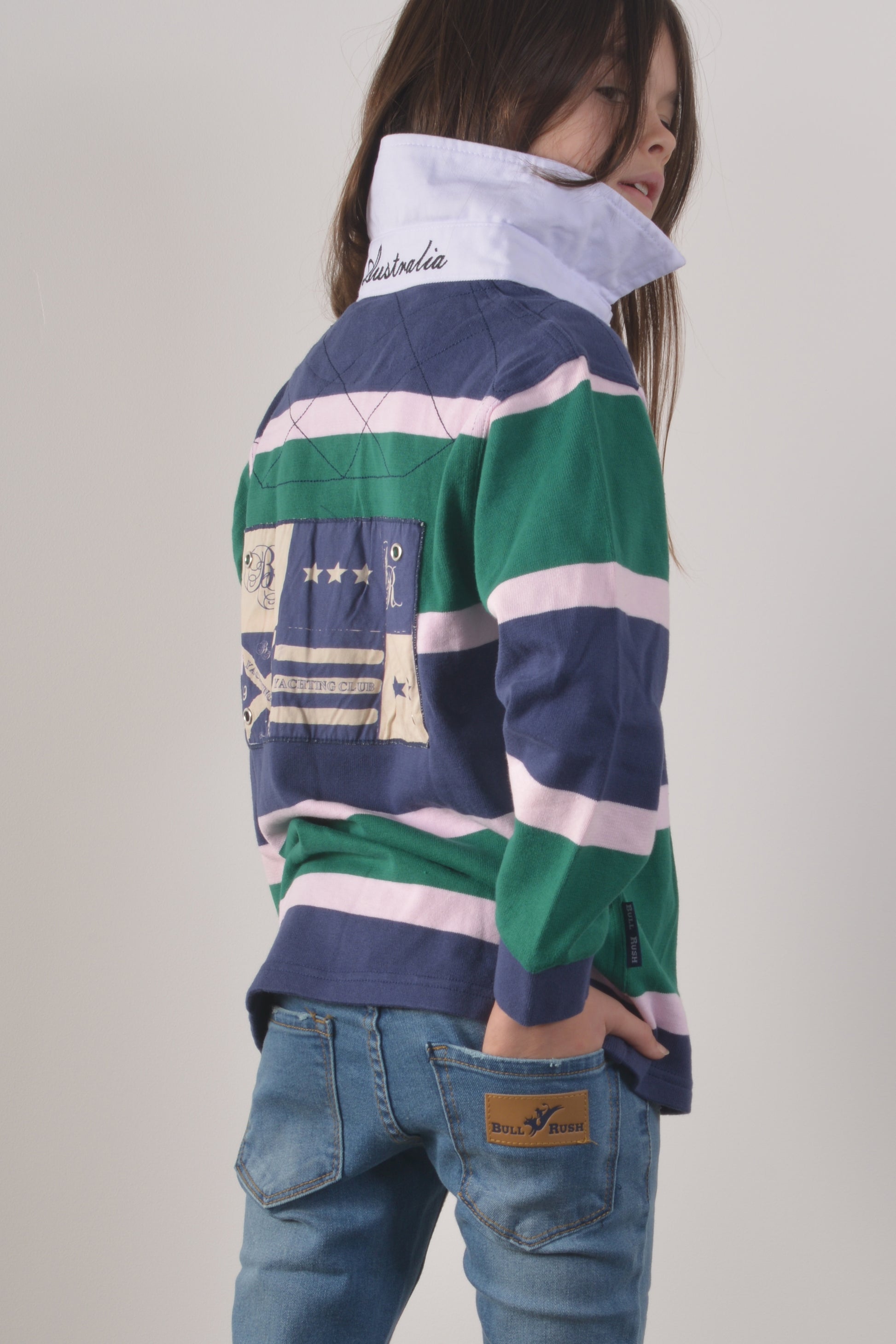 The anniversary rugby is culminated from signature BullRush colours of navy and green with this hint of pastel pink for a point of difference.