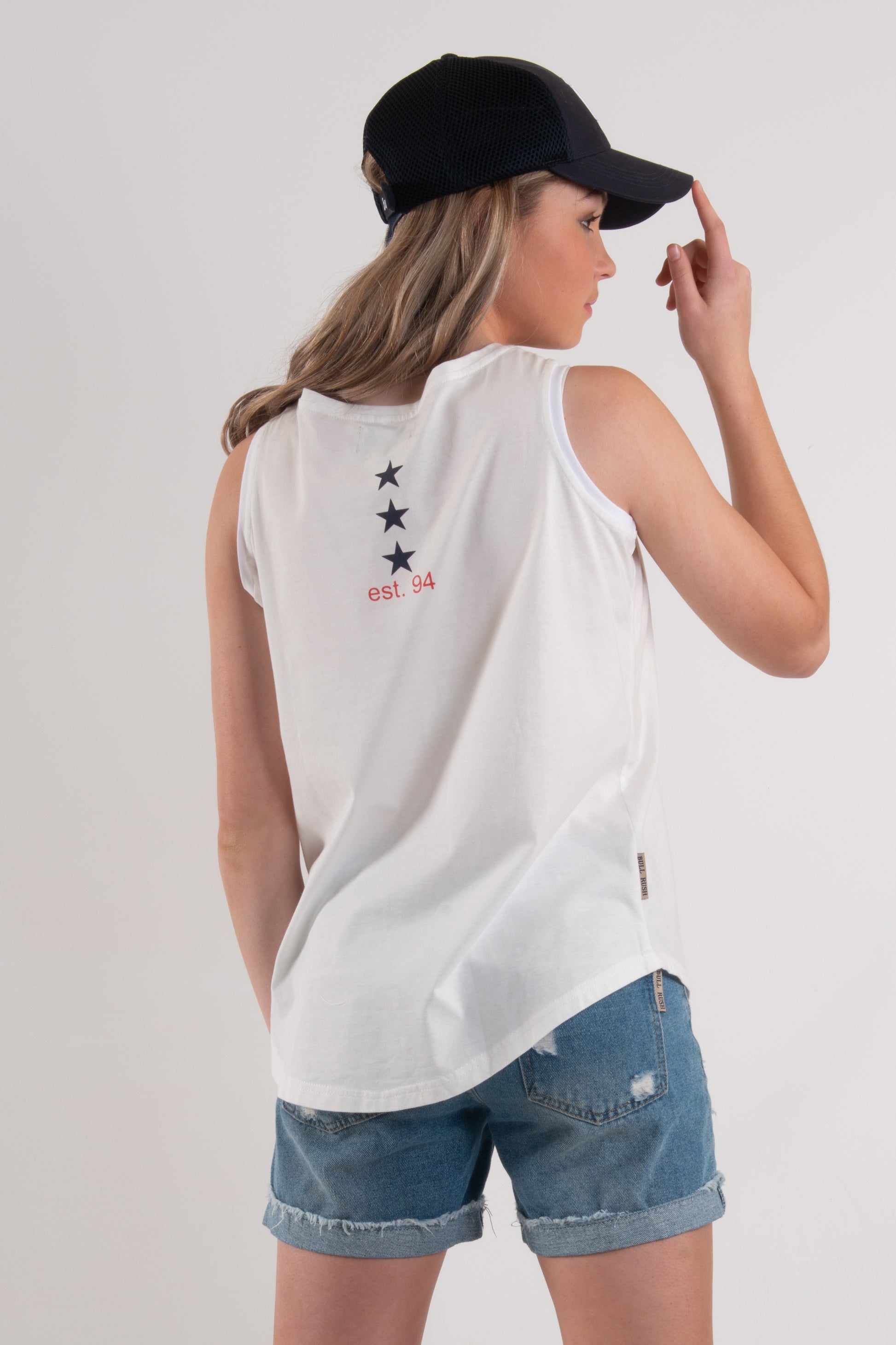 our size chart. For our denim, she wears a size 6. In tops, she wears a size S,