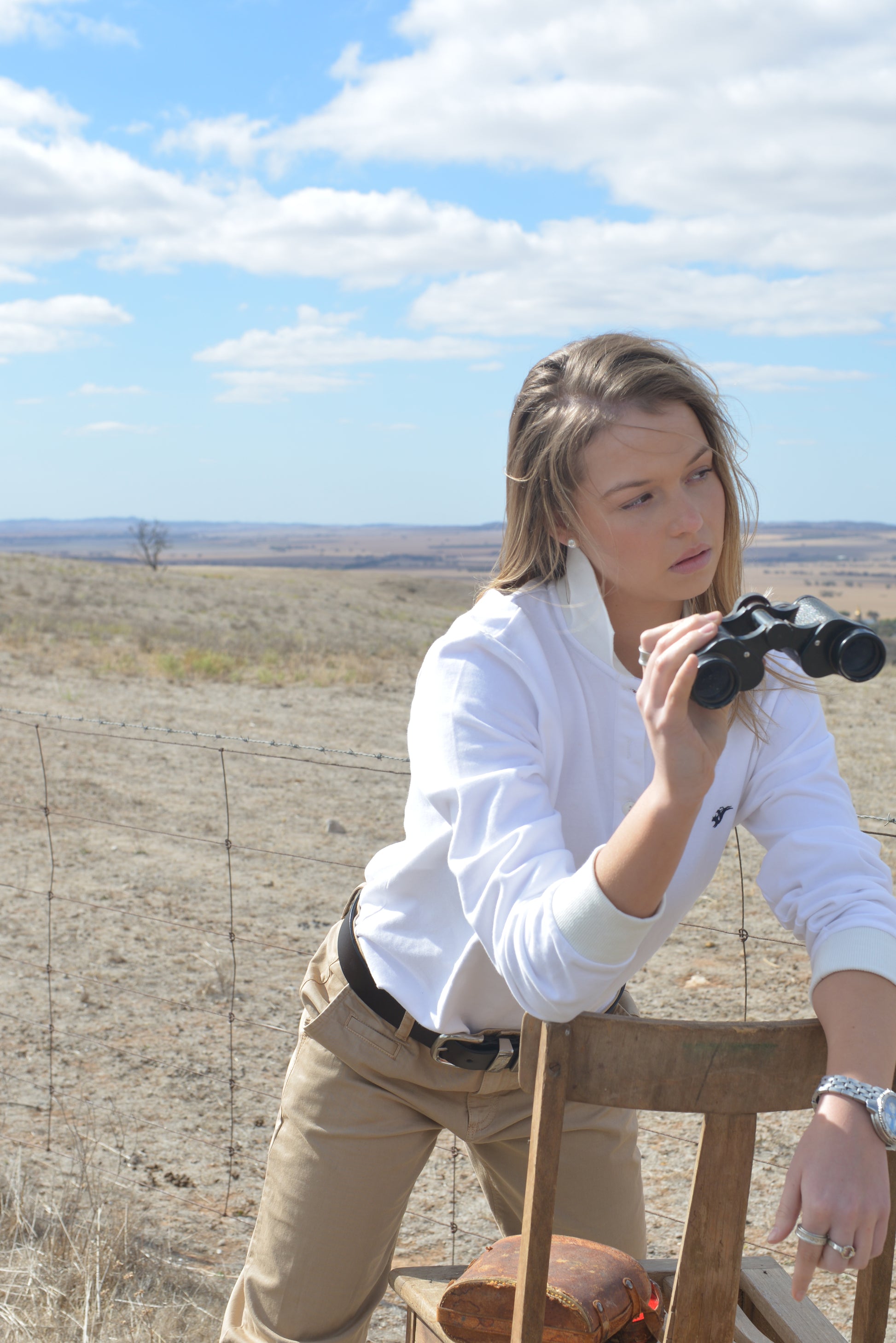 our size chart. For our denim, she wears a size 6. In tops, she wears a size S,