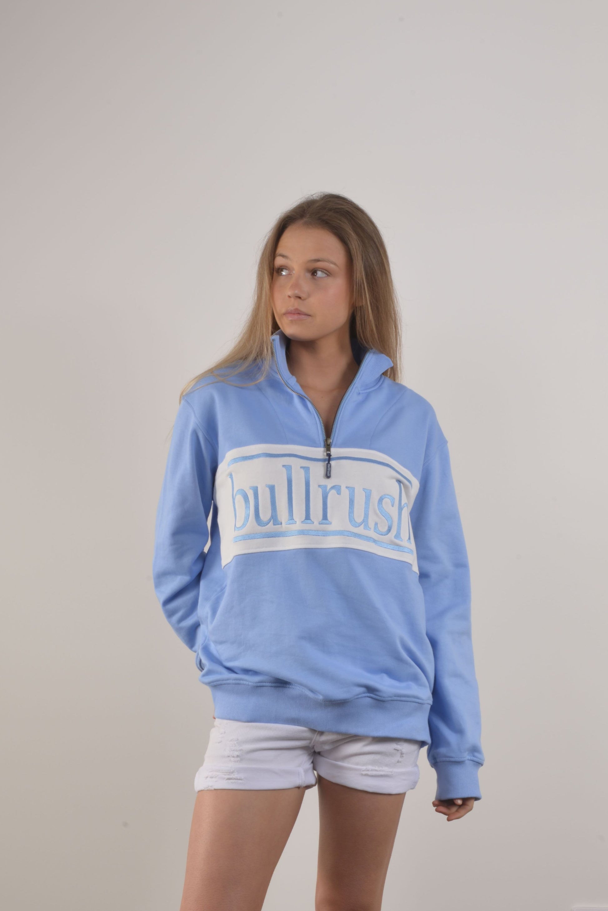 BullRush Logo Quarter Zip is the perfect unisex sweater. Made from a heavy weight French terry and garment washed to provide a super soft and worn in feel, with embroidered logo panel.